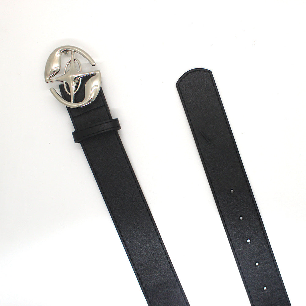 Men's And Women's Retro And Fashion All-matching Pure Black Belt