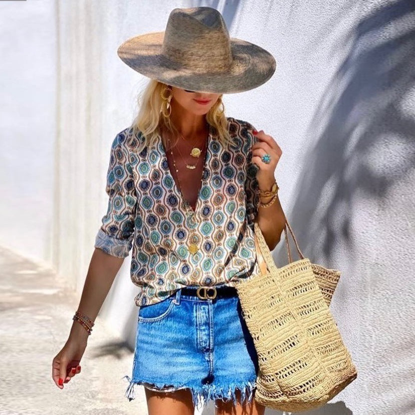 Long Sleeve Pullover V-neck Top All-matching Limorista