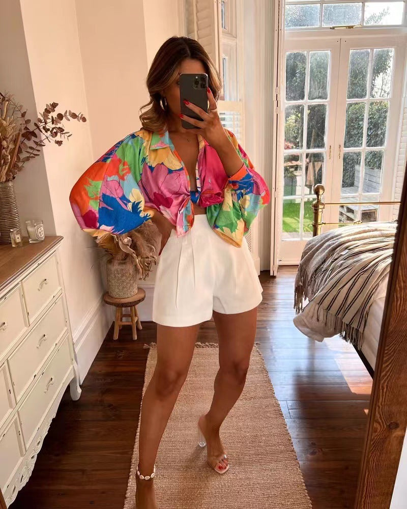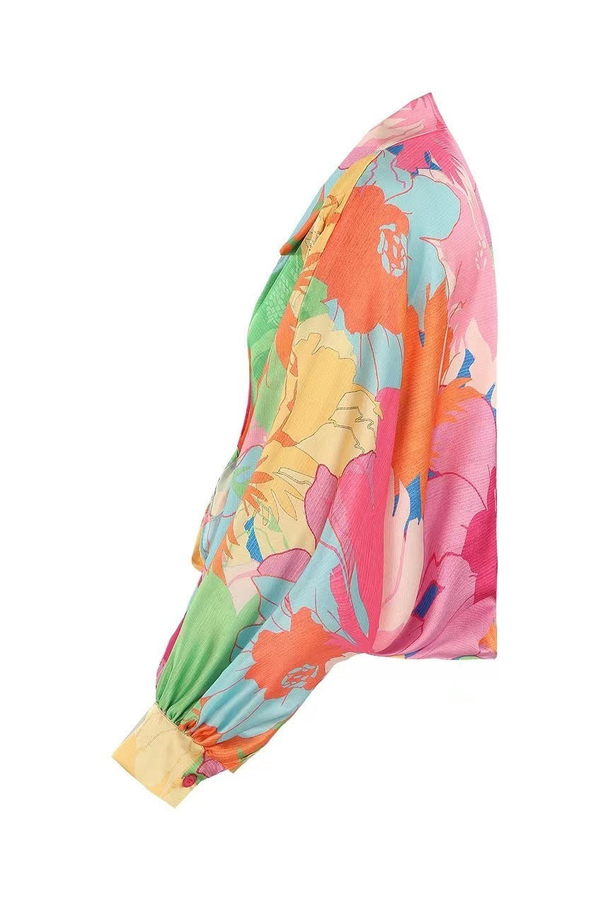 Women's Fashion Printed Lantern Sleeve All-matching Shirt