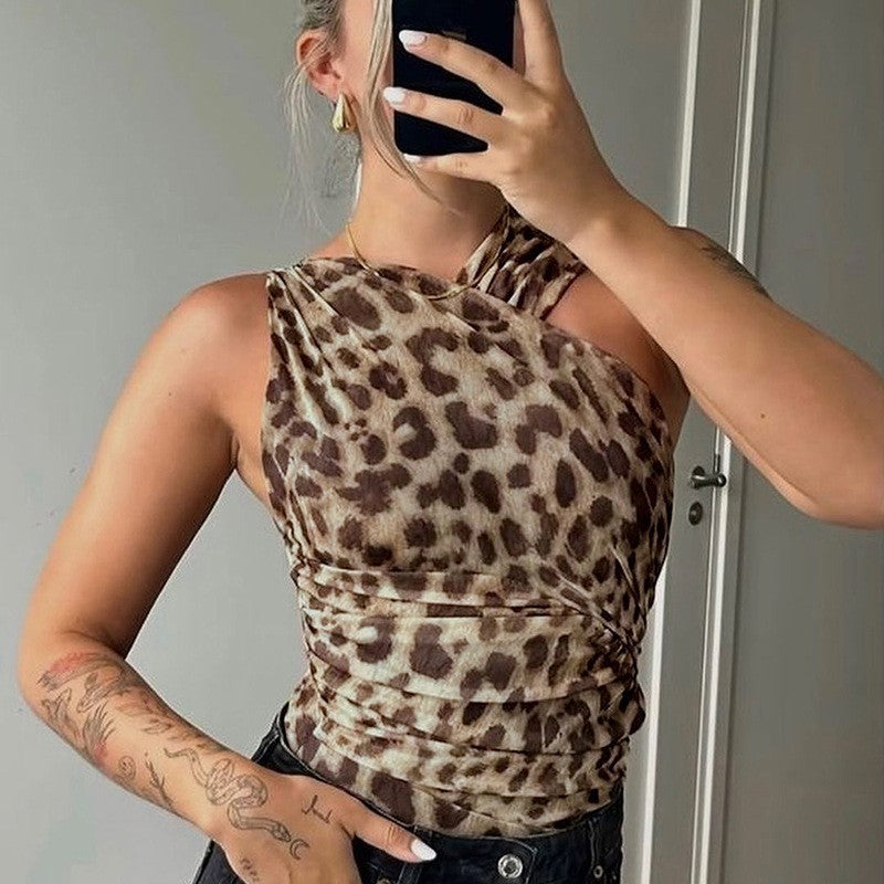 Women's Leopard Print T-shirt Slim Fit Jumpsuit