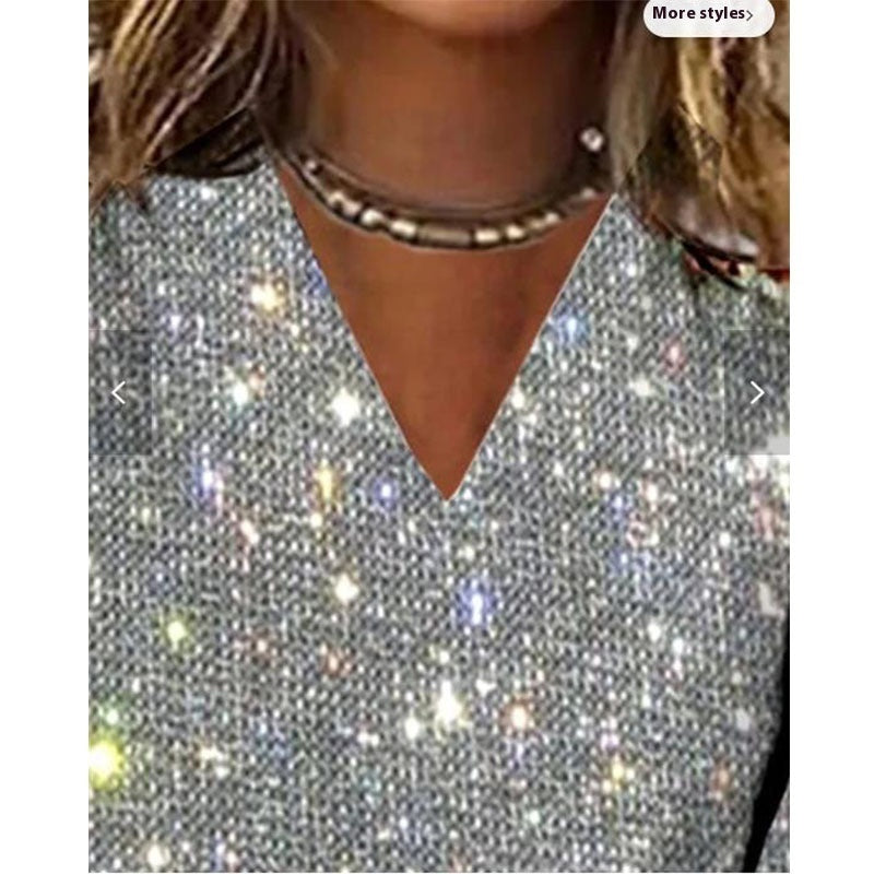 Women's Long Sleeves V-neck Christmas Shiny T-shirt