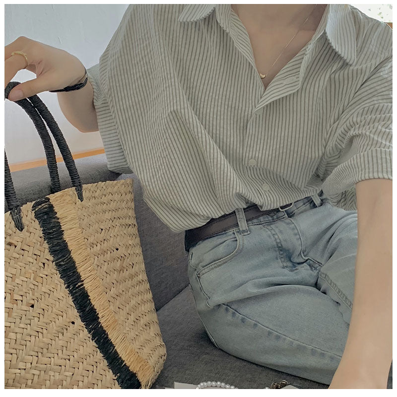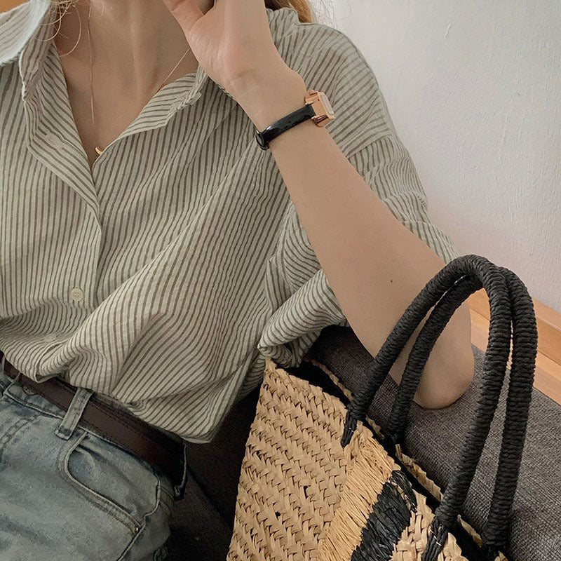 Women's Temperament Fashion Striped Short-sleeved Shirt Top