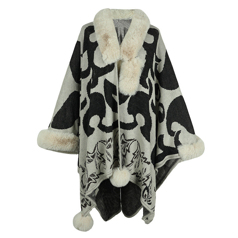 Women's Fur Collar Thickened Warm Shawl