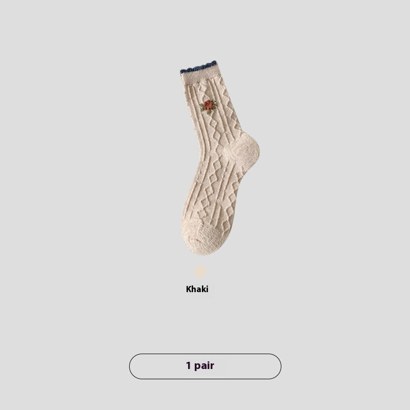 Vintage Small Flower Wool Socks Fleece Lined Padded Warm Keeping Tube Socks
