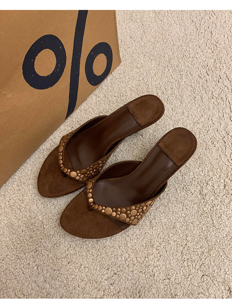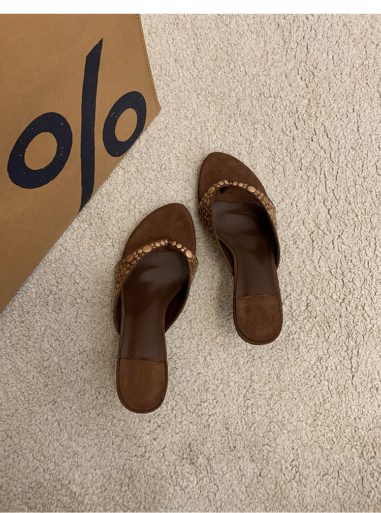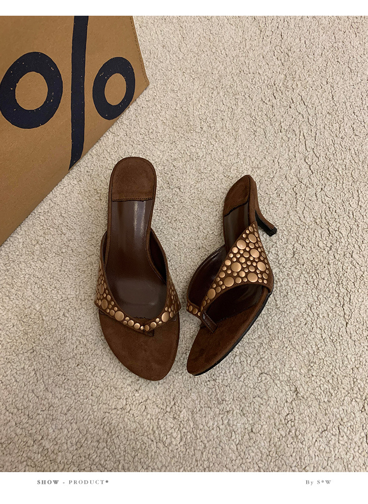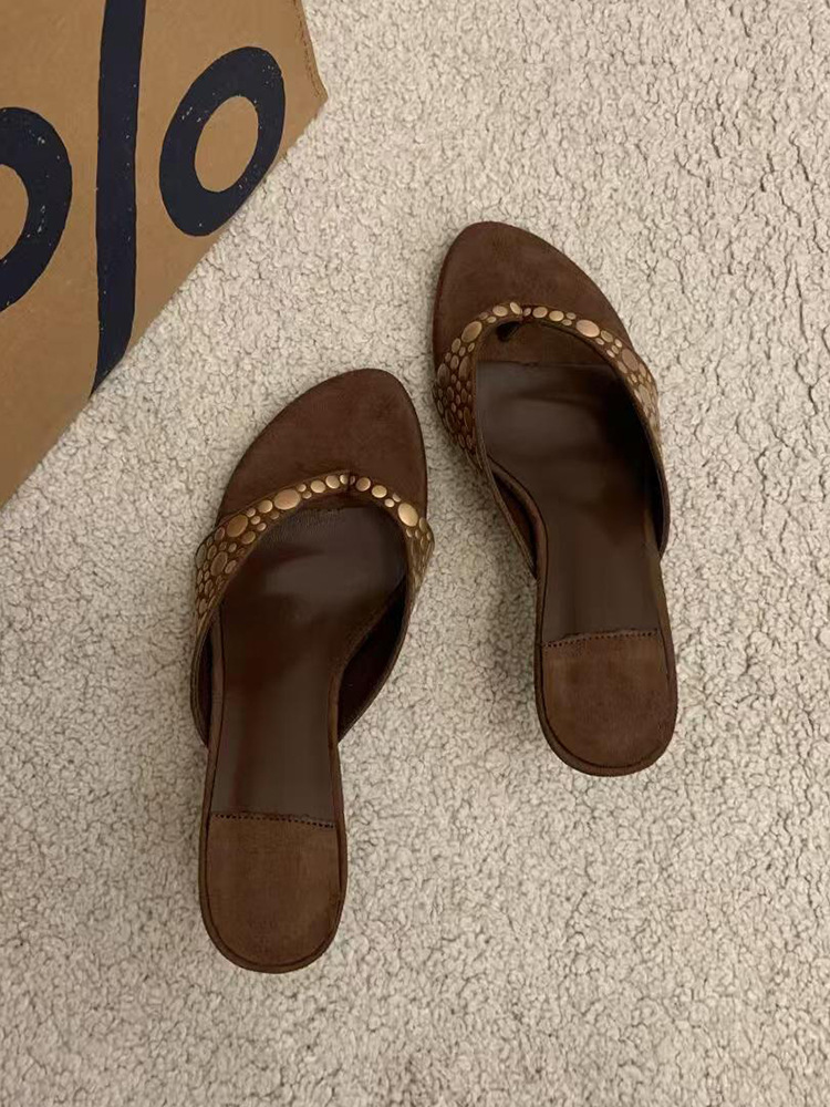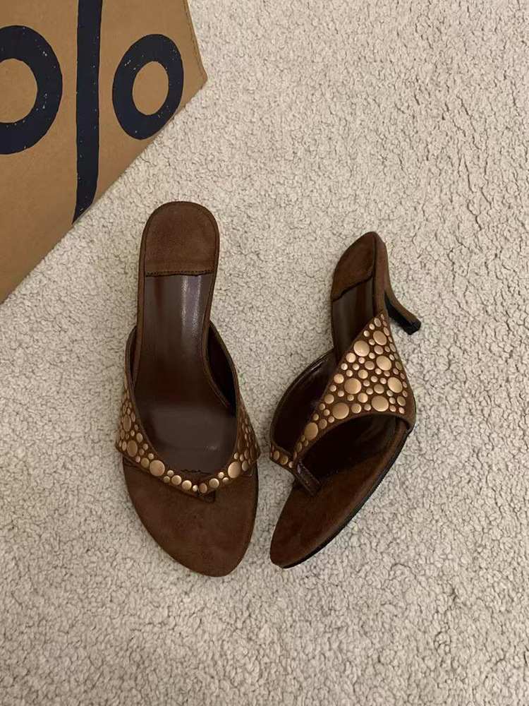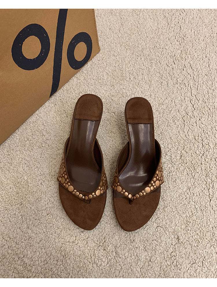 Retro Rivet Suede Stiletto Heel Flip-flops Women's High Heels